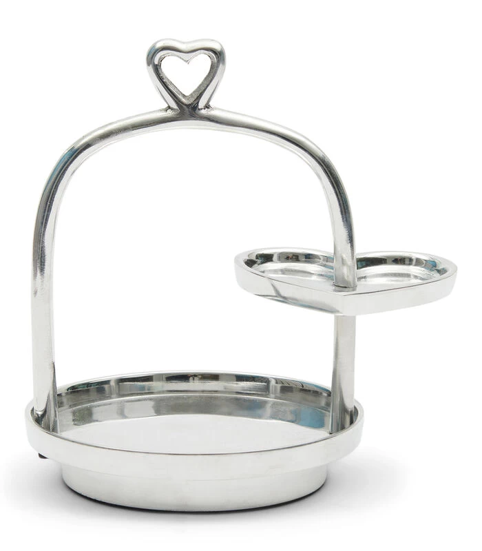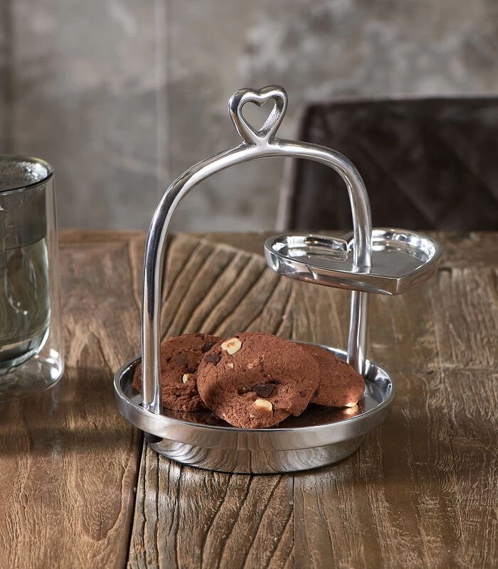 De Lots Of Love Mini Etagère is een kleine etagère die bestaat uit twee serveerplateaus. De etagère is gemaakt van zilverkleurig aluminium. Zowel het handvat als het kleine plateau heeft de vorm van een hart. De etagère is dus geschikt voor je valentijn, maar wanneer je een vriend of vriendin wilt verwennen met een lekkernij.