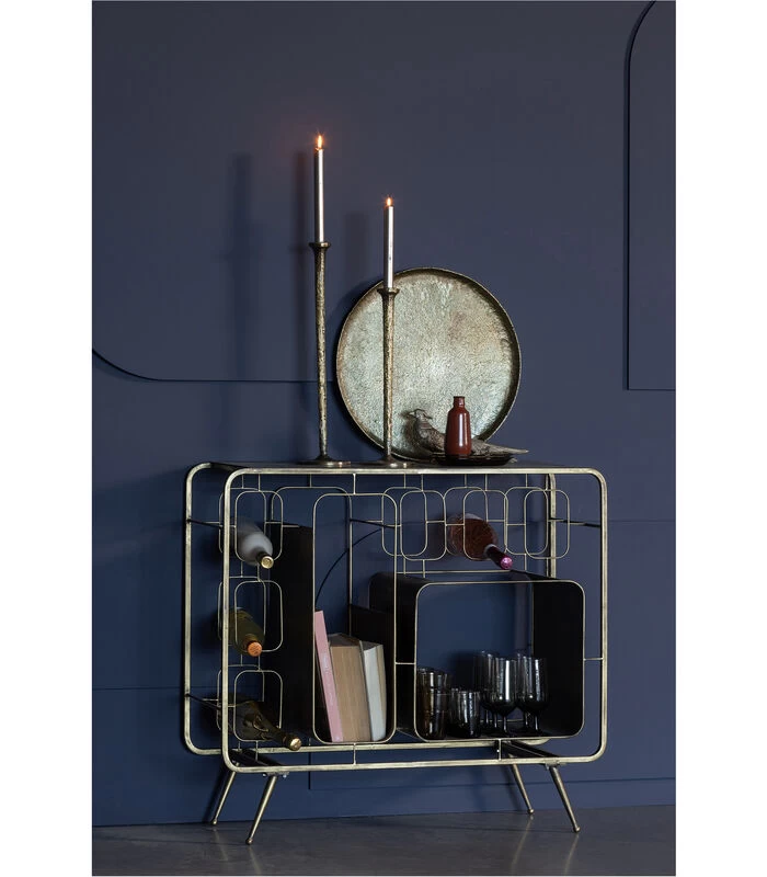 Nog op zoek naar een chique podium voor de wijnflessen? Zoek dan niet verder! De Capo wijnkast biedt meer dan genoeg ruimte voor het presenteren van de mooiste wijnflessen en straalt direct veel luxe uit. Deze stijlvolle wijnkast komt uit de collectie van het Nederlandse merk BePureHome en heeft door de antique brass finish een matglanzende gouden coating. De Capo wijnkast biedt zes ligplaatsen en twee staanplaatsen voor wijnflessen. In het kleinere open vak kan het mooiste glaswerk of accessoires gepresenteerd worden.