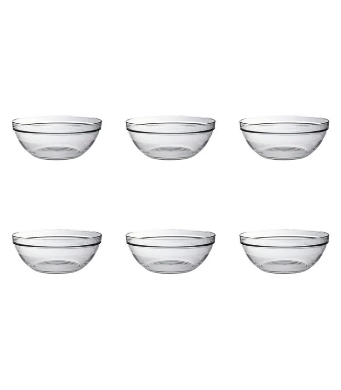 De Lys schalen van Duralex zijn een waardevolle toevoeging in iedere keuken en op de tafel. Deze schalen, gemaakt van gehard glas zijn perfect voor het mixen, bereiden en serveren van de lekkerste gerechten. Door het geharde glas zijn deze schalen niet alleen shockbestendig en bestand tegen thermische schommelingen, ze kunnen daarnaast ook prima gebruikt worden in de magnetron en vriezer. Daarnaast hebben de schalen een handige stapelrand, waardoor ze goed stapelbaar zijn en ze ruimte besparen in je kast. En na gebruik kunnen deze schalen in de vaatwasmachine gereinigd worden. De set bestaat uit 6 transparante schalen met een diameter van 26 cm en een inhoudsmaat van 3,45 liter.