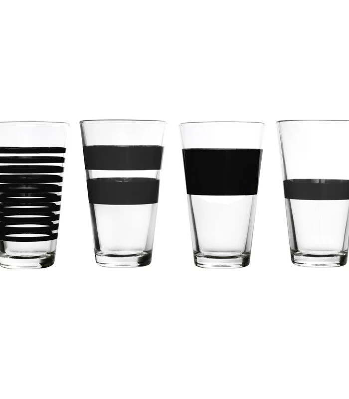 Glas 32,5cl Zwart Stripes – Set/4