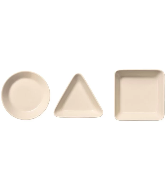 Teema van Kaj Franck is een icoon van modern Scandinavisch design geworden. De Teema driedelige mini–serveerset heeft de klassieke Teema–vormen: cirkel, vierkant en driehoek. De mini–serveerset is bij uitstek geschikt voor kleine gerechten zoals tapas of kan worden gebruikt op de ontbijttafel voor boter of marmelade. Elke schotel heeft een diameter van 12 cm. Nu verkrijgbaar in een linnentint die een natuurlijk detail toevoegt aan elke tafel en prachtig combineert met vintagebruin, vintageblauw en wit. De serveerset is een geweldig cadeau; hij past ook goed bij andere serviezen dan Teema.