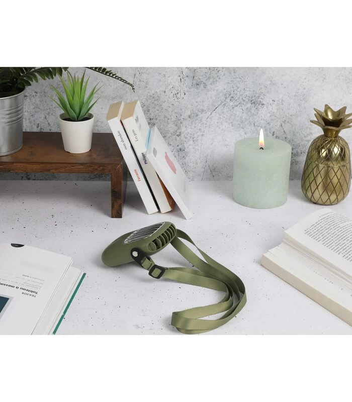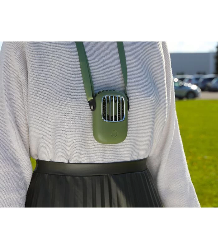 – Draagbare ventilator– 3 snelheden– Diameter 10 cm– Desk stand– Tot 6 uur autonomie– Verstelbare nekriem inbegrepen– USB kabel inbegrepen