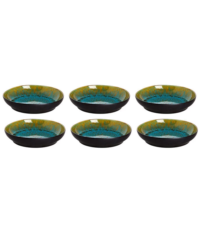 Palmer Bord Diep Lotus 21 Cm Zwart Turquoise Stoneware 6 Stuk(s)
