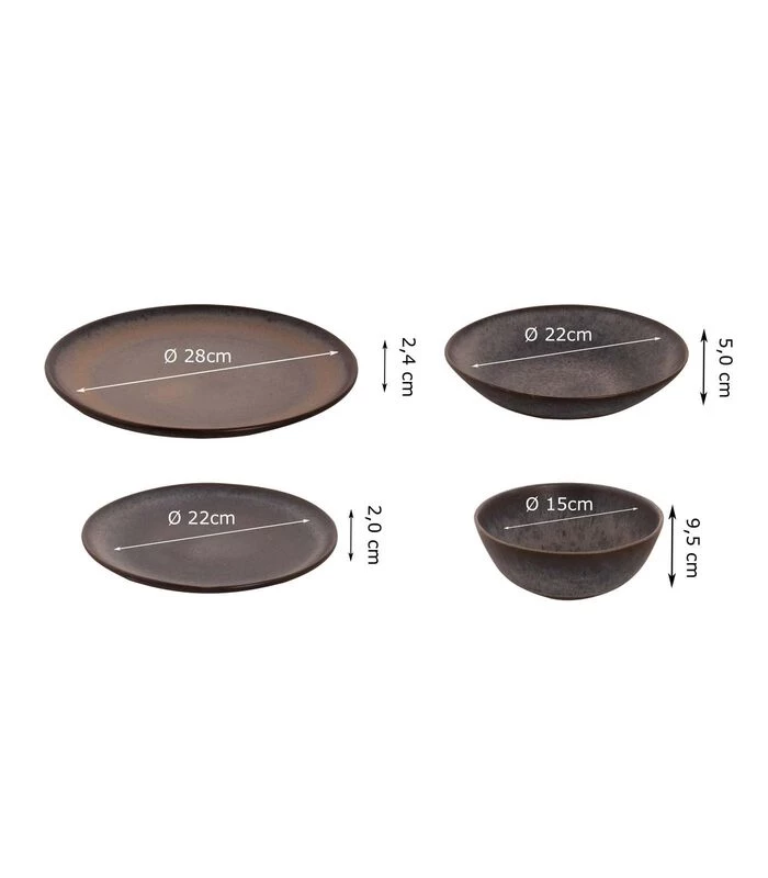 · Product: 6 dinerborden 28 cm, 6 ontbijtborden 22 cm, 6 diepe (pasta)borden 22 cm en 6 schalen 15 cm