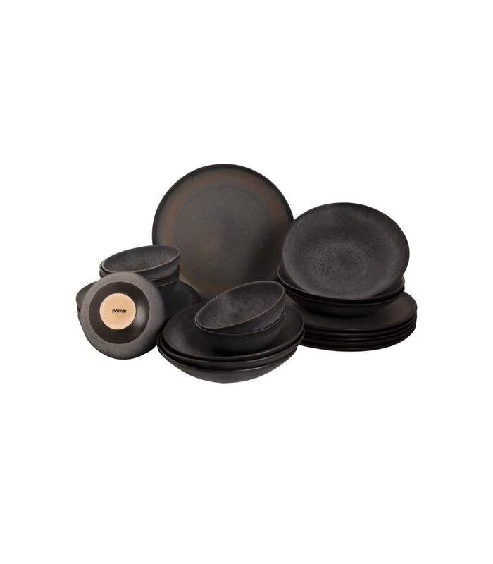 De serie Houston van Palmer is gemaakt van het materiaal stoneware. Na gebruik kunnen de borden en schalen eenvoudig gereinigd worden in de vaatwasmachine. Deze 24–delige serviesset bestaat uit 6 dinerborden van 28 cm, 6 ontbijtborden van 22 cm, 6 diepe (pasta)borden met een doorsnede van 22 cm en 6 schalen met een diameter van 15 cm en een inhoudsmaat van 80 cl.
