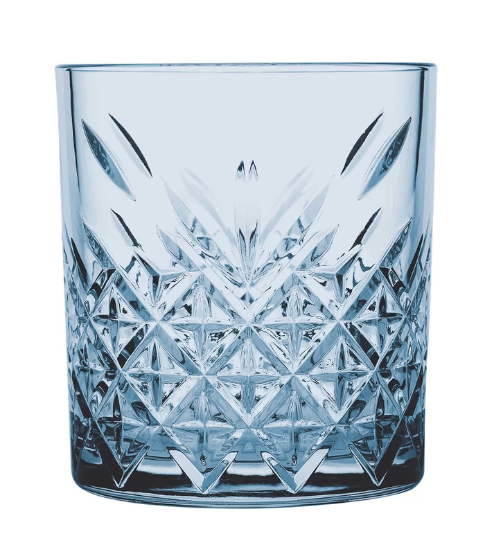Deze opvallende waterglazen met chique gouden rand uit de serie Timeless hebben een prachtig rechte vorm, waardoor ze fijn in de hand liggen. Met hun bijzondere hoekige glasbewerking maken zij iedere frisdrank of cocktail tot een ware traktatie. De glazen hebben een dikke bodem, wat ze een robuust en stoer karakter geeft. Daarnaast zijn deze glazen gemaakt van extreem sterk glas en kunnen na gebruik perfect gereinigd worden in de vaatwasmachine. Met deze waterglazen heb je voor ieder moment op de dag de juiste glazen in huis. Deze set bestaat uit 4 blauwe waterglazen met een inhoudsmaat van 35,5 cl.