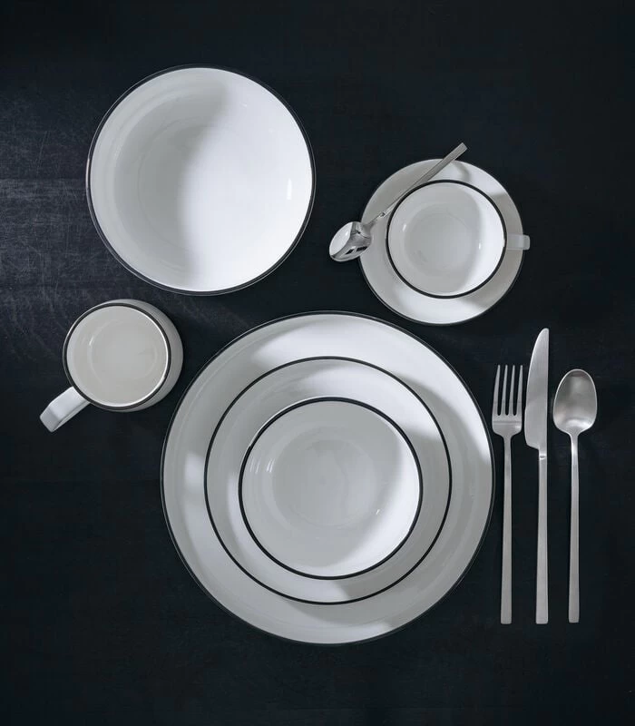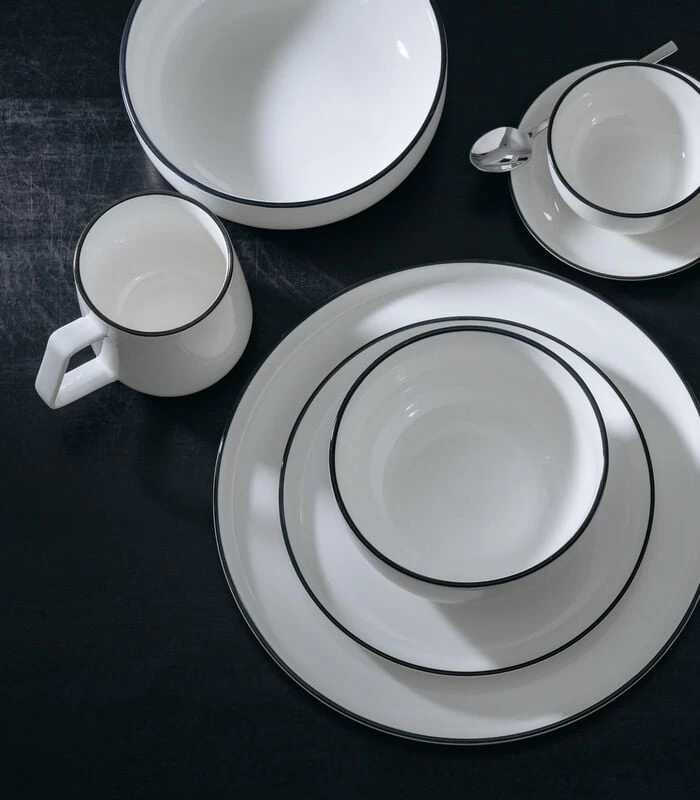 Het Studio Base servies brengt ons terug naar de basis. Deze collectie kenmerkt zich door een elegante, witte vorm gecombineerd met een zwarte rand. Door zijn moderne uitstraling en het hoogwaardige porselein is het de perfecte serie voor dagelijks gebruik maar ook voor speciale gelegenheden.