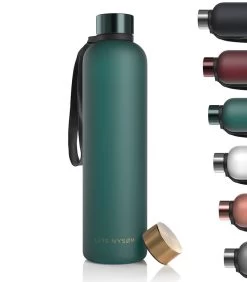 De fles overtuigt met zijn minimalistisch design, waar u ook bent. Personaliseer de fles met de bijgeleverde stijlvolle stickers. De fles is verkrijgbaar in 6 unieke kleuren. Met het extra meegeleverde gouden deksel kunt u het uiterlijk van uw fles aanpassen naar uw eigen smaak.