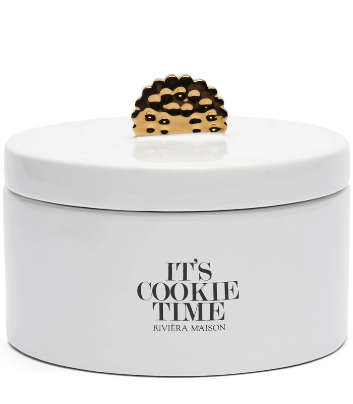 Een perfecte plek om je koekjes in op te bergen? Dat is de It’s Cookie Time voorraadpot. Deze koektrommel is gemaakt van porselein en is rond van vorm. De deksel, die ook van porselein is, sluit met een siliconen ring. Zo blijven je koekjes extra lang vers. Leuk detail: de handgreep op de deksel stelt een half koekje voor en is goudkleurig.
