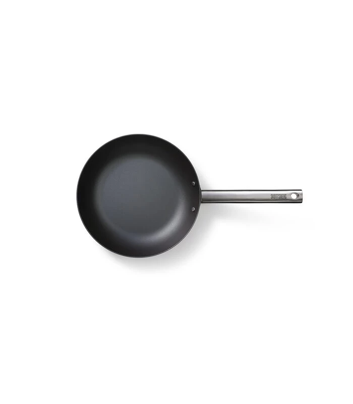 De Skottsberg Carbon Steel wokpan heeft de look van een antiaanbaklaag en wordt gewaardeerd om een aantal bijzondere eigenschappen. De wok is pre–seasoned, dat wil zeggen; de pan is 2 keer ingebrand met plantaardige olie en reageert als een antiaanbakpan. Daarnaast heeft de bodem van de wokpan dé perfecte dikte (2,5 mm) om te voorkomen dat de bodem van de pan kromtrekt op inductie. De steel van deze wokpan is hol en neemt de hitte van de pan niet over.