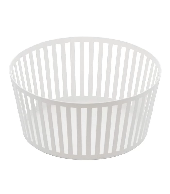 De schaduw van de lijnen van deze fruitmand dansen. Deze stijlvolle fruitmand staat prachtig op tafel.