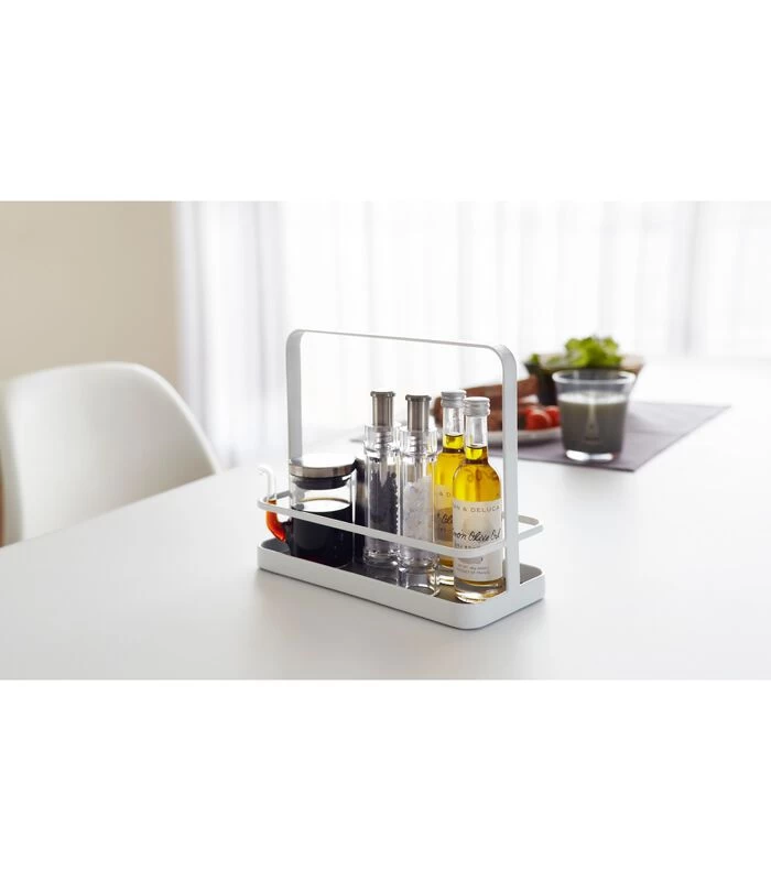 Op dit simpele en stijlvolle kruidenrek kan een grote verscheidenheid aan kruiden of oliën worden gezet. Zowel geschikt voor in de keuken als op de eettafel. Gemakkelijk te dragen en te verplaatsen. Gemaakt van staal.